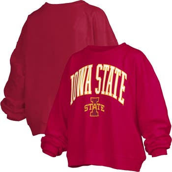 Women's Pressbox Cardinal Iowa State Cyclones Janise Arch Over Logo Waist Length Oversized Pullover Sweatshirt