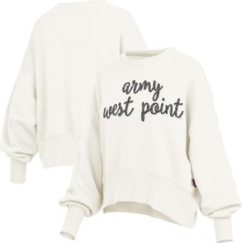 Show off your love for the Army Black Knights in comfort and style with this Oversized Chelsea Waist Length Pullover Sweatshirt from Pressbox. The chenille applique graphics with metallic accents add a touch of sparkle, ensuring your Army Black Knights spirit shines. The oversized fit and dropped shoulder seams provide a relaxed, laid-back feel, perfect for cozy game days or casual outings.
