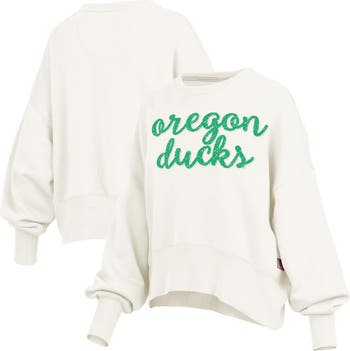 Show off your love for the Oregon Ducks in comfort and style with this Oversized Chelsea Waist Length Pullover Sweatshirt from Pressbox. The chenille applique graphics with metallic accents add a touch of sparkle, ensuring your Oregon Ducks spirit shines. The oversized fit and dropped shoulder seams provide a relaxed, laid-back feel, perfect for cozy game days or casual outings.