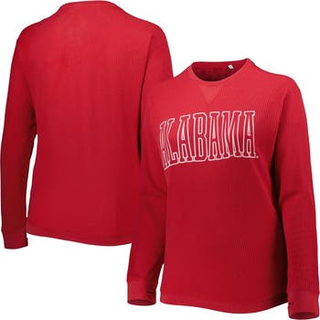 The Women's Pressbox Crimson Alabama Crimson Tide Surf Plus Size Southlawn Waffle-Knit Thermal Tri-Blend Long Sleeve T-Shirt is the perfect way to show your support for the Alabama Crimson Tide. Made from a soft and comfortable cotton, polyester, and spandex blend, this thermal tee features waffle knit fabric for added warmth and thumbholes in the cuffs for extra comfort. The bold Alabama Crimson Tide graphics on the front and back will let everyone know who you're rooting for.