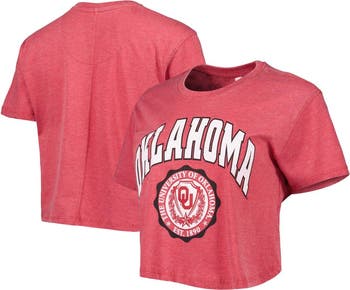 The Women's Pressbox Crimson Oklahoma Sooners Edith Vintage Burnout Crop T-shirt is a must-have for devoted Oklahoma Sooners fans. Its unique vintage look, featuring burnout fabric and distressed screen print graphics, will turn heads wherever you go. The rounded droptail hem adds a stylish touch, while the cotton and polyester blend ensures both comfort and durability. Whether you're cheering on the Sooners at the game or showing support around town, this crop t-shirt is the perfect way to represent your team.