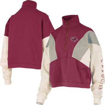 Stay cozy while showcasing your South Carolina Gamecocks pride with this Ferrara Color Block Quarter-Zip Sweatshirt from Pressbox. The screen print team logo at the left chest and wordmark down the left arm boldly display your South Carolina Gamecocks pride. The side pockets and mock neck provide added coverage on those cooler days, while the quarter-zip closure allows for easy layering.