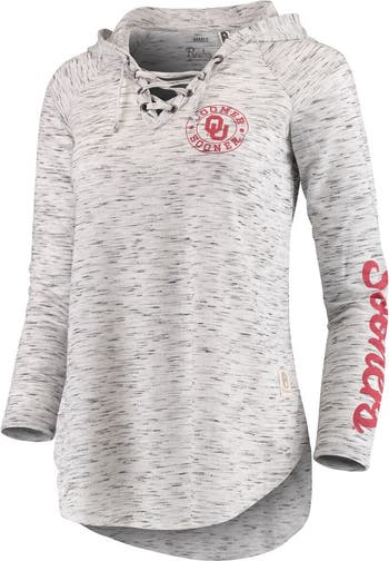 Women's Pressbox Gray Oklahoma Sooners Space Dye Lace-Up V-Neck Long Sleeve T-Shirt