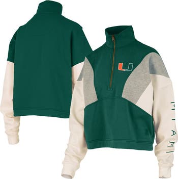 Stay cozy while showcasing your Miami Hurricanes pride with this Ferrara Color Block Quarter-Zip Sweatshirt from Pressbox. The screen print team logo at the left chest and wordmark down the left arm boldly display your Miami Hurricanes pride. The side pockets and mock neck provide added coverage on those cooler days, while the quarter-zip closure allows for easy layering.