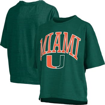Women's Pressbox Green Miami Hurricanes Nelson Arch Over Logo Waist Length Oversized Slub T-Shirt