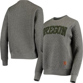 The Women's Pressbox Heather Charcoal Oregon Ducks Moose Quilted Pullover Sweatshirt is the perfect way to show your support for the Oregon Ducks. Made from a soft and comfortable polyester and cotton blend, this sweatshirt features a front pouch pocket and a midweight design ideal for moderate temperatures. The rib-knit collar, cuffs, and waistband provide a snug fit, while the sewn-on fabric appliques and side insets add style. Whether you're cheering on the Ducks at the game or relaxing at home, this sweatshirt will keep you warm and comfortable.
