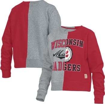 The Women's Pressbox Heather Gray Wisconsin Badgers Half and Half Raglan Pullover Sweatshirt is the perfect way to show your support for the Wisconsin Badgers. Made from a comfortable cotton and polyester blend, this midweight sweatshirt features a fleece lining for added warmth during chilly game days. The raglan sleeves and thumbholes in the cuffs provide a comfortable and stylish fit, while the screen print graphics proudly display your Wisconsin Badgers pride. Whether you're cheering from the stands or simply showing your support, this sweatshirt is the perfect way to represent the Wisconsin Badgers in style.