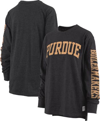 Women's Pressbox Heathered Black Purdue Boilermakers Two-Hit Canyon Long Sleeve T-Shirt