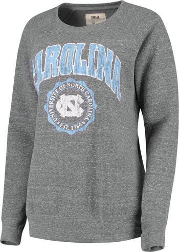 The Women's Pressbox Heathered Gray North Carolina Tar Heels Edith Vintage Knobi Pullover Sweatshirt is a must-have for any devoted Tar Heels fan. This midweight pullover features a cozy fleece lining, perfect for chilly game days. The distressed graphics give it a vintage look, while the raglan sleeves and thumbholes in the cuffs provide added comfort and style. Whether you're cheering from the stands or just showing your support, this sweatshirt is the perfect way to represent the North Carolina Tar Heels.