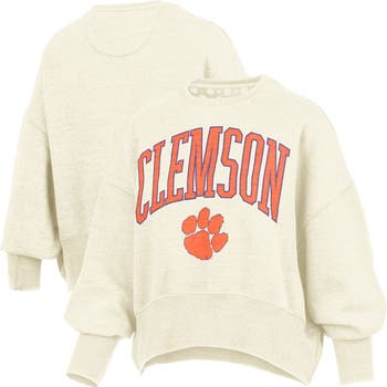 Women's Pressbox Natural Clemson Tigers Oversized Waist-Length Crewneck Sweatshirt