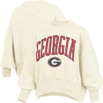 Women's Pressbox Natural Georgia Bulldogs Oversized Waist-Length Crewneck Sweatshirt