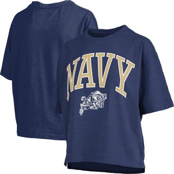 Women's Pressbox Navy Navy Midshipmen Nelson Arch Over Logo Waist Length Oversized Slub T-Shirt