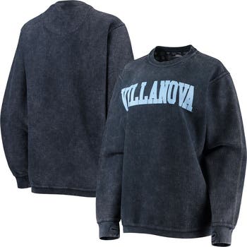 The Women's Pressbox Navy Villanova Wildcats Comfy Cord Vintage Wash Basic Arch Pullover Sweatshirt is the perfect way to show your support for the Villanova Wildcats. Made from soft and comfortable cotton, this sweatshirt features a unique and stylish vintage-inspired corded distressed fabric. The lightweight design is perfect for mild temperatures, and the pullover style makes it easy to get on and off. Plus, the thumbholes in the cuffs keep your hands warm on chilly days. Whether you're cheering on the Wildcats at the game or relaxing at home, this sweatshirt is sure to become a favorite.