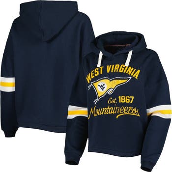 The Women's Pressbox Navy West Virginia Mountaineers Super Pennant Pullover Hoodie is the perfect way to show unwavering support for the West Virginia Mountaineers. This midweight hoodie features a fleece lining for added warmth, ideal for chilly game days. Distressed details give it a vintage look, while dropped shoulders and a raw edge on the hem add style. Whether cheering from the stands or showing support, this hoodie is sure to become a favorite.