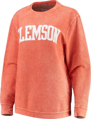The Women's Pressbox Orange Clemson Tigers Comfy Cord Vintage Wash Basic Arch Pullover Sweatshirt is the perfect way to show your support for the Clemson Tigers. Made from soft and comfortable cotton, this lightweight sweatshirt is perfect for mild temperatures. The corded distressed fabric gives it a vintage look, while the thumbholes in the cuffs keep your hands warm. Whether you're cheering on the Tigers at the game or just relaxing at home, this sweatshirt is sure to keep you comfortable and stylish.