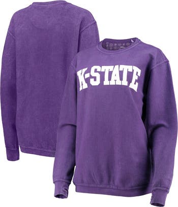 The Women's Pressbox Purple Kansas State Wildcats Comfy Cord Vintage Wash Basic Arch Pullover Sweatshirt is the perfect way to show your support for the Kansas State Wildcats. Made from soft and comfortable cotton, this sweatshirt features a unique and stylish vintage-inspired corded distressed fabric. The lightweight design is perfect for mild temperatures, and the pullover style makes it easy to get on and off. Plus, the thumbholes in the cuffs keep your hands warm on chilly days. Whether you're cheering on the Wildcats at the game or relaxing at home, this sweatshirt is sure to become a favorite.