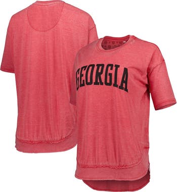 The Women's Pressbox Red Georgia Bulldogs Arch Poncho T-Shirt is the perfect way to show your support for the Georgia Bulldogs. Made from a soft cotton and polyester blend, this poncho features a raw-edged inset seam and hem, as well as a rounded droptail hem for a stylish and comfortable fit. The bold Georgia Bulldogs arch logo is proudly displayed on the front, so you can show your team spirit wherever you go.