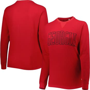The Women's Pressbox Red Georgia Bulldogs Surf Plus Size Southlawn Waffle-Knit Thermal Tri-Blend Long Sleeve T-Shirt is the perfect way to show your support for the Georgia Bulldogs. Made from a soft and comfortable cotton, polyester, and spandex blend, this thermal tee features waffle knit fabric for added warmth and thumbholes in the cuffs for extra comfort. The bold Georgia Bulldogs graphics on the front and back will let everyone know who you're rooting for. Whether you're cheering on the Bulldogs at the game or just relaxing at home, this thermal tee is the perfect way to show your team spirit.