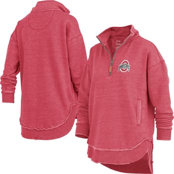 Stay cozy while repping your Ohio State Buckeyes with the Pressbox Northfork Sojourn Poncho Quarter-Zip Sweatshirt. This poncho sweatshirt features a relaxed fit and fleece lining, making it the perfect choice for a casual yet stylish game day look. With two side pockets to keep your hands warm and an embroidered team logo on the left chest, you'll be ready to cheer on your team in comfort and style.