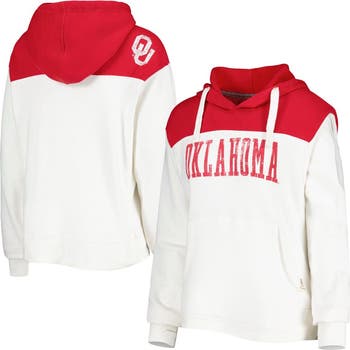 Women's Pressbox White/Crimson Oklahoma Sooners Chicago 2-Hit Yoke Pullover Hoodie