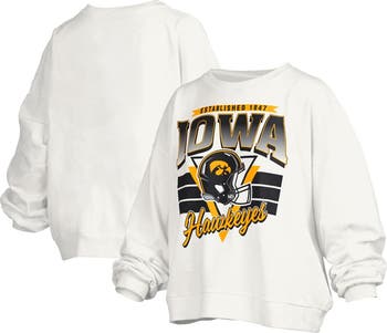 Layer up with a bold display of your unending loyalty to the Iowa Hawkeyes by grabbing this Janice Retro Logo Oversized Pullover Sweatshirt from Pressbox. It features the university's founding year, a Iowa Hawkeyes wordmark and a team helmet printed across the torso. The oversized design ensures this extra layer rests comfortably while the midweight design makes this pullover an ideal grab when cooler temperatures arrive.