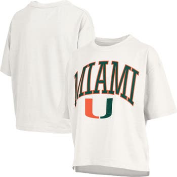 Women's Pressbox White Miami Hurricanes Nelson Arch Over Logo Waist Length Oversized Slub T-Shirt