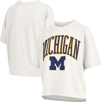 Women's Pressbox White Michigan Wolverines Nelson Arch Over Logo Waist Length Oversized Slub T-Shirt