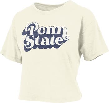 Celebrate your unwavering Penn State Nittany Lions spirit with the Pressbox White Penn State Nittany Lions Vintage Easy Team Name Waist-Length T-Shirt. This comfortable cotton-polyester tee features screen print graphics that proudly display your allegiance to the Nittany Lions. Its rounded hem and waist length provide a flattering fit, making it perfect for game days or everyday wear. Show your support for the Penn State Nittany Lions with this stylish and spirited t-shirt.