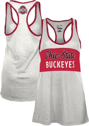 Cheer on the Ohio State Buckeyes in style and comfort with the Pressbox Tracy Racerback Tank Top. The burnout fabric adds a trendy touch to this already stylish tank top, while the perforated details and color block design create a look that's both modern and sporty. With the iconic Ohio State Buckeyes wordmark emblazoned across the front, this tank top makes it clear you're a loyal member of the Ohio State Buckeyes faithful.