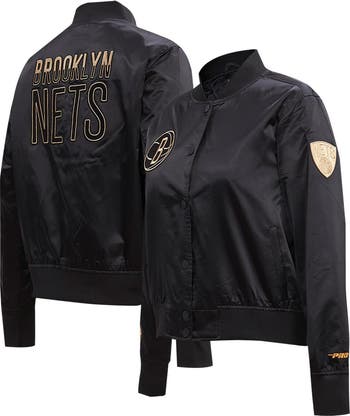 Women's Pro Standard Black Brooklyn Nets Glam Satin Full-Snap Varsity Jacket