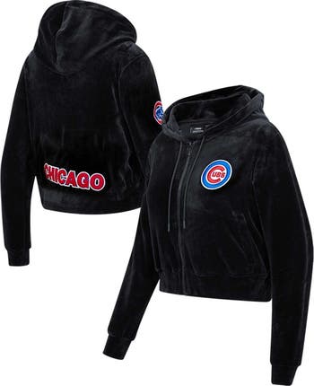 Women's Pro Standard Black Chicago Cubs Classic Velour Full-Zip Hoodie Track Jacket