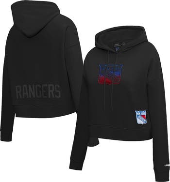 Make a fashion statement in this New York Rangers Jewels Cropped Pullover Hoodie from Pro Standard. Its faux crystals create a shimmering look, while raised embroidery adds dimension to the solid design. The cropped hem of this New York Rangers hoodie provides a stylish, modern aesthetic that pairs perfectly with high-waisted jeans or leggings.
