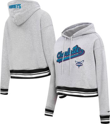 Women's Pro Standard Heather Gray Charlotte Hornets Script Tail Cropped Pullover Hoodie
