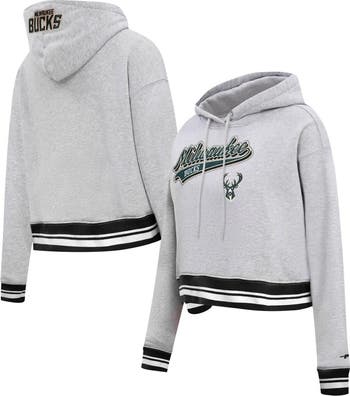 Women's Pro Standard Heather Gray Milwaukee Bucks Script Tail Cropped Pullover Hoodie