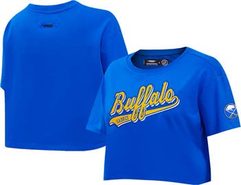 Women's Pro Standard Royal Buffalo Sabres Boxy Script Tail Cropped T-Shirt