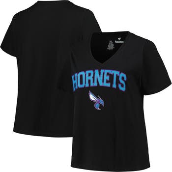 Celebrate your unwavering loyalty to the Charlotte Hornets with the Profile Women's Black Charlotte Hornets Plus Size Arch Over Logo V-Neck T-Shirt. Crafted from soft cotton, this comfortable tee features a bold arch logo that proudly displays your Hornets pride. Whether you're cheering from the stands or simply showing your support, this t-shirt is the perfect way to represent the Charlotte Hornets and connect with fellow fans.