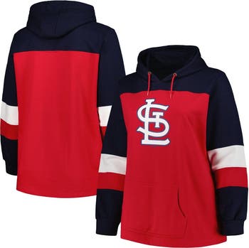 Represent your beloved St. Louis Cardinals in style with the Women's Red St. Louis Cardinals Plus Size Colorblock Pullover Hoodie. This midweight hoodie is perfect for moderate temperatures, featuring sewn-in contrast-color inserts that add a touch of flair. The front pouch pocket provides convenient storage for your essentials, while the official St. Louis Cardinals logo proudly displays your unwavering support for the team. Whether you're cheering from the stands or simply showing your Cardinals pride, this hoodie is a must-have for any dedicated fan.