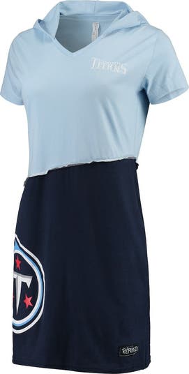Women's Refried Apparel Light Blue/Navy Tennessee Titans Sustainable Hooded Mini Dress