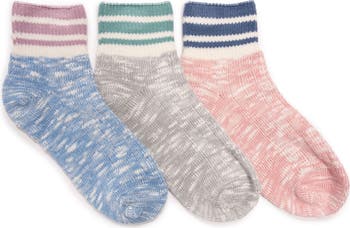 Add a pop of playful charm to your sock drawer with MUK LUKS 3pk Slub Mini Crew Socks! This 3-pair pack features cozy slub-knit texture and bold striped cuffs for a look that’s equal parts comfy and fun. Perfect for lounging or layering, these socks bring a touch of whimsy to every step.