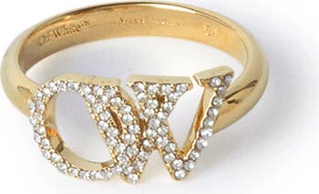 GOLD PLATED - OW DESIGN - OW RING WITH STRASS BRASS + STRASS