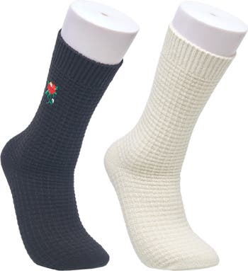 The Ed Hardy Women's Waffle Knit Slouchy Sock 2-Pack blends comfort with subtle edge. Featuring soft waffle knit fabric, finished with signature rose embroidery for a touch of bold, feminine style. Perfect for relaxed, everyday wear with attitude.