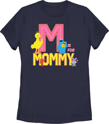 - Strut your stuff with this stylish new women's t-shirt that is perfect for every occasion! Featuring the phrase: "M Is for Mommy" along with Big Bird, Cookie Monster, Elmo, and Oscar the Grouch printed across the front.