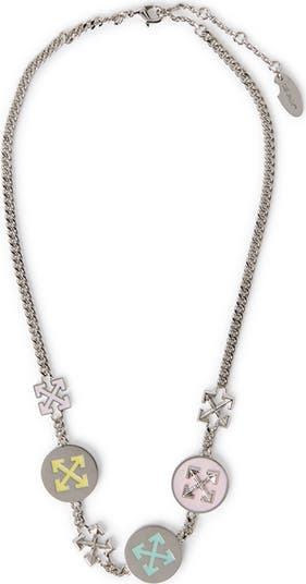 SILVER PLATED - ARROW DESIGN - ARROW BUTTON NECKLACE BRASS + ENAMEL