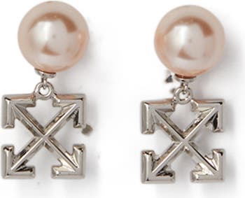 SILVER PLATED - ARROW DESIGN - ARROW PEARL EARRINGS BRASS + SYNTHETIC PEARL