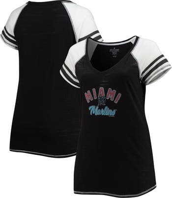 Women's Soft as a Grape Black Miami Marlins Curvy Colorblock Tri-Blend Raglan V-Neck T-Shirt