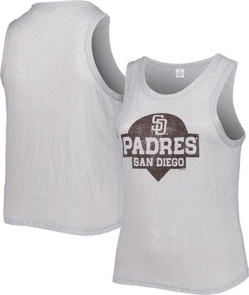 The Women's Soft as a Grape Gray San Diego Padres Plus Size High Neck Tri-Blend Tank Top is the perfect way to show your support for the San Diego Padres. Made from a soft and comfortable polyester, rayon, and spandex blend, this tank top features a high neck and distressed details for a vintage look. The scoop neck and sleeveless design make it perfect for warm weather, and the San Diego Padres logo is proudly displayed on the front. Whether you're cheering on the Padres at the stadium or just relaxing at home, this tank top is sure to become a favorite.