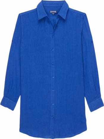 Slip on the Fragance women's shirt-dress over your swimsuit after your daily swim. The light and floaty linen fabric is particularly comfortable, making it perfect for laid-back holiday. Its loose cut and long sleeves makes this plain shirt the ultimate in casual chic.