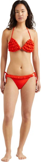 Turn heads in this vibrant bikini. Structured for the perfect fit in recycled polyamide and elastane, the frills add a certain 'je ne sais quoi' to this teeny weeny bikini.