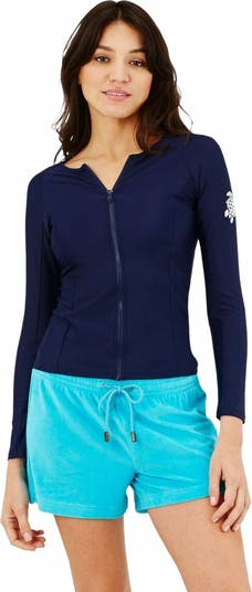 Play with contrasts with the color schemes on this women's UV-resistant plain zip-up T-shirt. This long-sleeved basic features a Vilebrequin turtle printed on one arm like a tattoo. It has a zip at the front and tailored sides.