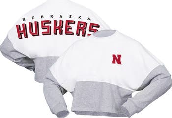 Women's Spirit Jersey White Nebraska Huskers Heather Block Cropped Long Sleeve Jersey T-Shirt